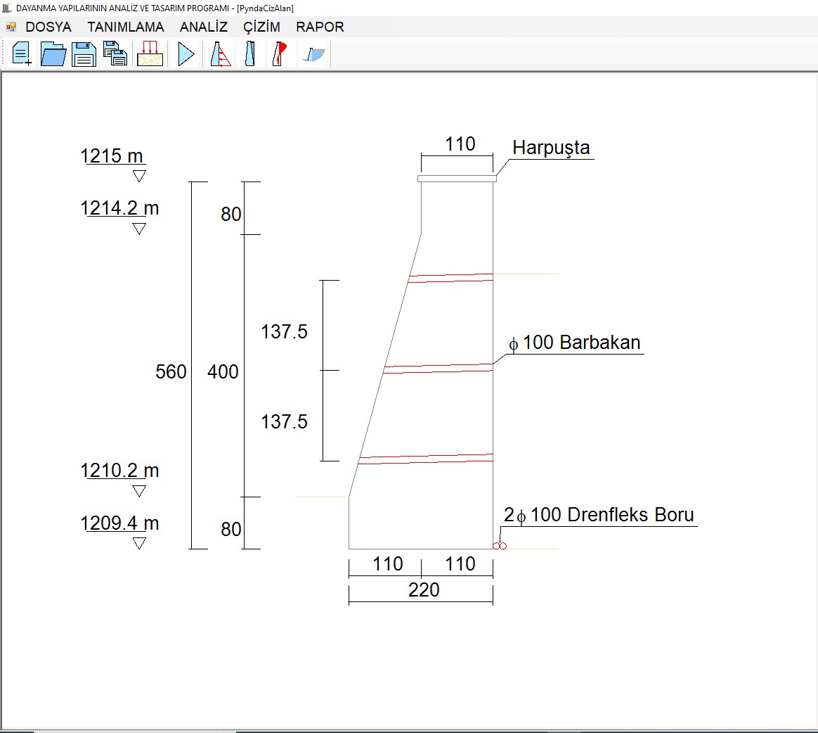 PYNDACAD V3 TAŞ İSTİNAT DUVARI PROGRAMI