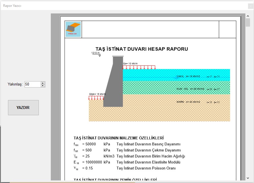 PYNDA-CAD V3; Taş istinat duvarlarının hızlı, kolay ve optimum tasarımını yapan bir programdır.