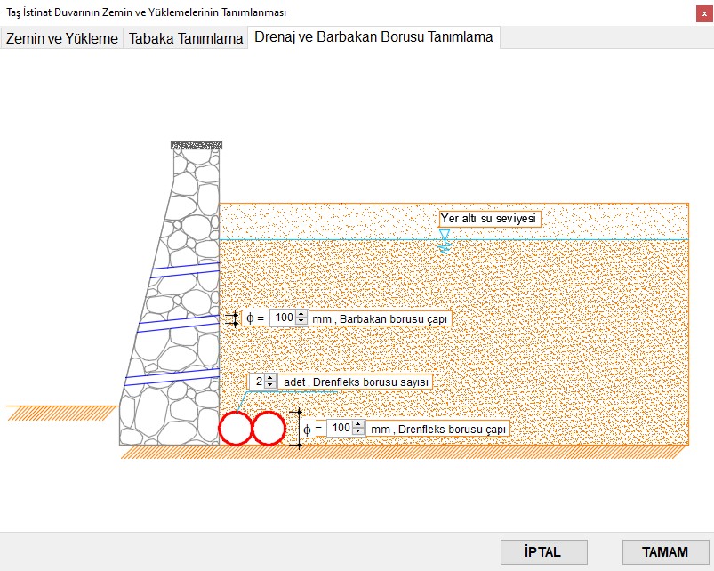 İstenilen sayıda drenaj borusu tanımlanabilmektedir.